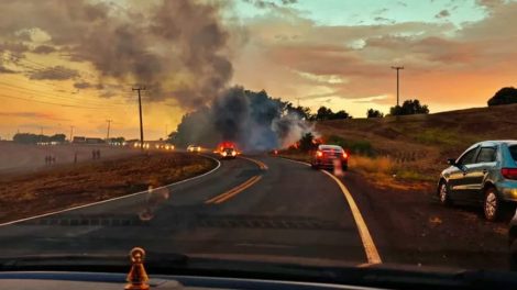 Uma van foi destruída por um incêndio no início da noite deste sábado (28), na PR-082, km 149, na Curva do Chalé, nas proximidades de São João do...