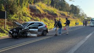 Na tarde desta segunda-feira 07 de julho, na Br487 (estrada boiadeira)em Araruna-Pr , ocorreu um acidente do tipo colisão lateral entre um veículo Gol e um caminhão prancha, seguido de uma colisão frontal entre o mesmo Gol e um Ford Ka. O acidente resultou em 2 mortos e 2 vítimas lesionadas. Segundo informações preliminares, o veículo gol seguia sentido Tuneiras D’Oeste com 3 ocupantes e, na altura do km 164, adentrou a pista em sentido contrario, colidindo lateralmente no caminhão prancha, que seguia sentido Campo Mourão. Com a colisão, o condutor do Gol perdeu o controle e bateu frontalmente com o Ford Ka, que seguia logo atrás do caminhão. No Ford Ka havia apenas o condutor, que foi encaminhado pelo Samu para o hospital em Campo Mourão. Já no Gol, o condutor, de 55 anos e o passageiro do banco traseiro, de 21 anos, filho do condutor, morreram no local. A passageira do banco dianteiro, esposa do condutor, foi encaminhada pelos Bombeiros para o hospital em Campo Mourão.