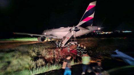 Um avião da Latam que partiu do Aeroporto de Guarulhos saiu da pista ao pousar no Aeroporto Serafim Enoss Bertaso, em Chapecó, no Oeste de Santa...
