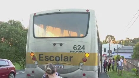 Cinco estudantes, entre 11 e 13 anos, ficaram feridos após puxarem a alavanca de emergência e caírem do ônibus do transporte escolar de Campo Magro...