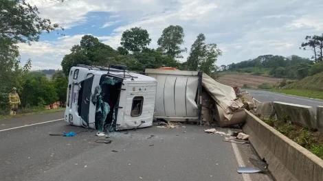 Uma carreta Mercedez Benz tombou em uma curva na rodovia BR-376, na localidade conhecida como Curva da Serrinha, na manhã desta quarta-feira (23 O...