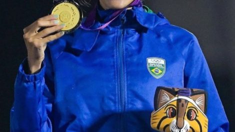 Aluna da Escola de Atletismo mantida pela Prefs, a de Assunção, no Paraguai, na segunda (19). Ela conquistou a medalha de ouro nos 800 metros e...