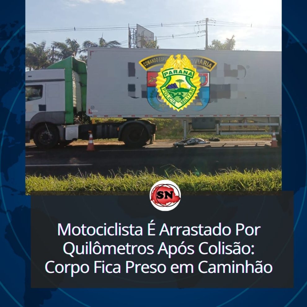 Um motociclista morreu ao ser atropelado por um caminhão, ficar preso no rodado do veículo e ser arrastado por quilômetros de distância entre a PR-444, próximo a Cafeeira, em Mandaguari, e o Contorno de Marialva, no norte do Paraná. O caso foi registrado no início da manhã desta quarta-feira (16).