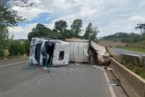 Uma carreta Mercedez Benz tombou em uma curva na rodovia BR-376, na localidade conhecida como Curva da Serrinha, na manhã desta quarta-feira (23 O Serviço...