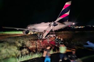 Um avião da Latam que partiu do Aeroporto de Guarulhos saiu da pista ao pousar no Aeroporto Serafim Enoss Bertaso, em Chapecó, no Oeste de Santa Catarina, na...