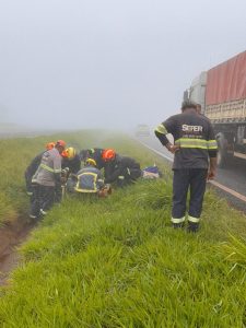 De acordo com as primeiras informações, a colisão envolveu uma motocicleta e um caminhão prancha. No momento do acidente, havia forte neblina e chuva fina, o que pode ter contribuído para a ocorrência. Outros veículos, incluindo um caminhão e um automóvel, também teriam se envolvido na batida.