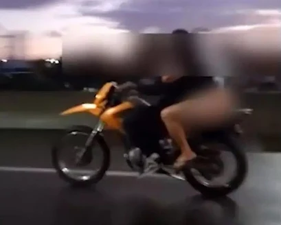 Nas imagens é possível ver a passageira na garupa da moto sem utilizar capacete e sem vestimenta nas pernas. As imagens foram compartilhadas nas redes sociais e rapidamente se espalharam pela internet